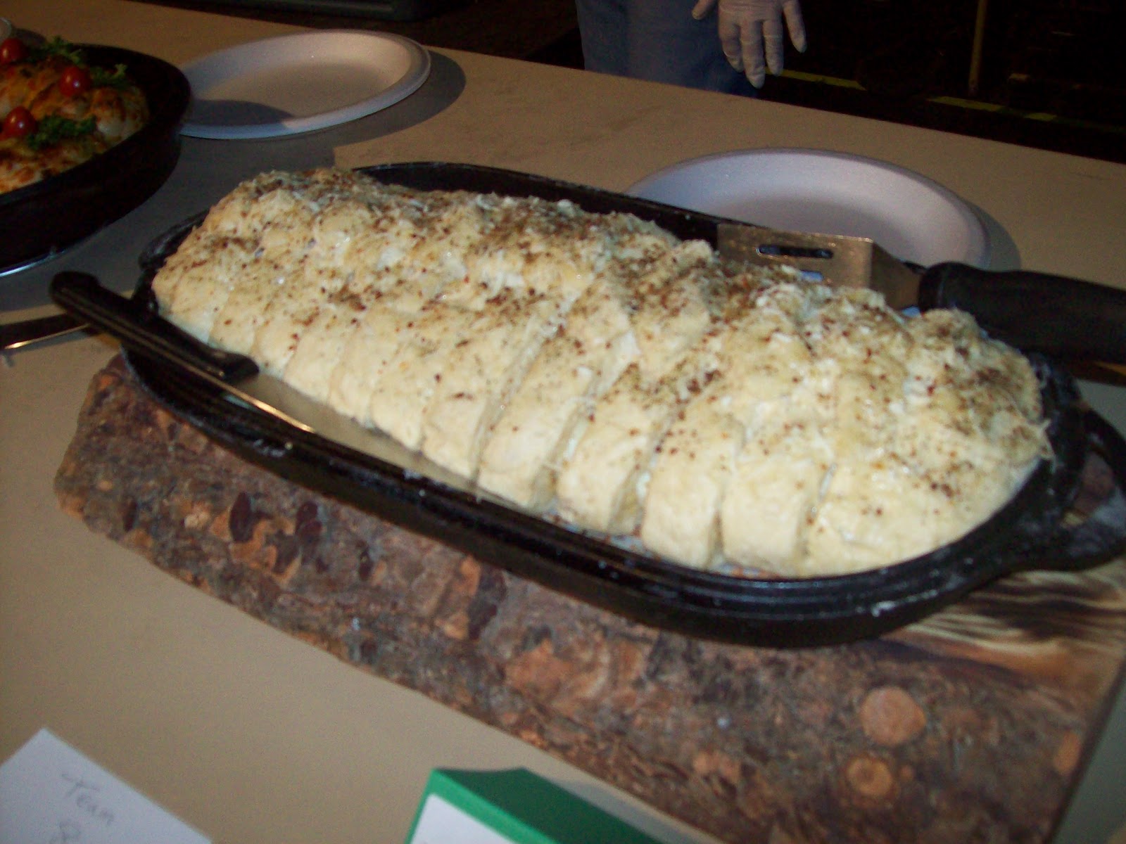 In the cooks meeting we were all informed for our starting time, as well as when the dishes were due. With the staggered times I knew it would be a stretch for my dessert to come out, and as you can see by the pictures – it did not set as planned. 1st hurdle, Melissa went to work on her bread, it looked phenomenal, I was pretty excited for it, put it on the coals and when they called for it , it was still doughy on the top, 2nd hurdle – lessons learned… Elevation!! Briquettes spend faster. My main course turned out beautifully – and yes I remembered to take the strings off it this time.